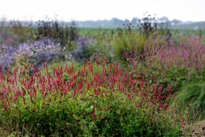 Hatten wir zu Beginn in 2011 noch eine für den Niederrhein eher typische Vegetationsdauer von 233 frostfeien Tagen, wechselten im Frühjahr 2012 warme Perioden mit starken Nachtfrösten, so dass der junge Austrieb 5 Mal gänzlich zurück fror. Der letzte Frost kam am Muttertag im Mai. Auch wenn es zu einzelnen Verlusten kam: Die Bestände erholten sich und die meisten Sorten boten spätestens im Juli wieder ein geschlossenes Bild. Die gesamte Wachstumsperiode blieb aber mit nur 168 Tagen sehr kurz. Der Winter 12/13 kam sehr spät und hielt dafür ungewöhnlich lange an, weshalb die Knöteriche erst Anfang Mai austrieben.